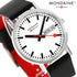 モンディーン クラシック デイデイト スイス製 メンズ レディース 腕時計 A667.30314.11SBBV MONDAINE アナログ ホワイト ブラック レッド 黒 ◆1951年、モンディーンは、「Frank & Bernheim」という時計の輸入販売を業務とする会社としてブラジルで設立され、1954年に社名をモンディーンに変更しました。1986年には、現クラシックコレクションとなる「スイス国鉄オフィシャル鉄道ウォッチ」を発表。その視認性の高さとシンプルで完成されたデザインは、誕生以来20年以上が経過した現在も世界中でロングセラーを記録しています。 クラシックは、スイス国鉄時計のオリジナルデザインに最も近いモデルです。日付と曜日を確認できるデイデイト機能がついているほか、ストラップの裏面がモンディーンのアイコンカラーである赤になっていることも人気の秘密。クイックリリース機能がついてベルトの着脱が工具なしで簡単に交換可能です。ストラップの素材は、葡萄の廃棄皮を再利用したグレープレザーを使用し、より環境に優しい商品となっています。