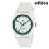 アディダス ストリート プロジェクトワン メンズ 腕時計 AOSTSP251 adidas STREET PROJECT ONE アナログ ホワイト グリーン 白 ◆スポーツ用品メーカーとしても知られる有名なブランドadidasより2001年、ストリートスポーツウエアブランド「adidas Originals (アディダス オリジナルス)」がスタート。 ケース素材にはリサイクルされた海洋プラスチックおよびバイオベースの樹脂を採用し、素材選びから環境への配慮を反映。これにより、従来のプラスチック製品よりも環境負荷を抑えることに成功しています。さらに、ソーラームーブメントを搭載することで電池交換の手間や廃棄を減らし、持続可能性を意識した設計を実現。エコ意識の高いユーザーにとって魅力的な選択肢となる一本です。
