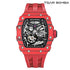 正規品 サーボンバ TB8208 エレメンタルシリーズ カーボンファイバー オープンハート メンズ 腕時計 TB8208CF-07 TSAR BOMBA TB8208 ELEMENTAL SERIES アナログ ブラック レッド 黒 ◆TSAR BOMBA(サーボンバ)は、その名の通り“圧倒的な存在感”を持つ2019年に誕生した香港発のウォッチブランドです。常識を超える原子力エネルギーにインスパイアされ、“時計も宇宙のようにダイナミックに変化をし続けるべきである”という理念を掲げています。肉厚でビッグサイズの大胆なウォッチケース、洗練された色使い、優れた耐久性、そして、時計製作における繊細な芸術が見事に融合しています。 「エレメンタルシリーズ」は、宇宙を構成する基本的な物質や元素をテーマにデザインされました。スケルトン化された文字盤は、内部の精巧な仕組みを美しく映し出し、繊細な歯車やブリッジ、テンプホイールがまるでアート作品のように視覚的な魅力を提供します。ベゼルにはカーボンファイバーを採用しています。 機械式腕時計
