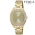 正規品 フルラ ロゴス レディース 腕時計 WW00038003L2 FURLA LOGOS アナログ ゴールド ◆FURLA(フルラ)は、1927年にイタリア・ボローニャでアルド・フルラネットにより創立されました。カラフル、ジョイフル、コンテンポラリーなイタリアのライフスタイルを、バッグやアクセサリーなどのアイテムへ投影させています。伝統的なクラフトマンシップ、熟練したアルチザンの持つ専門知識、そして革新的なデザインを礎に、2017年に創業90周年を迎えました。素晴らしい品質基準は、今や世界中から定評を得ています。 バーインデックスを採用しており視認性がよく、すっきりとまとまったデザインです。ベゼルに配置したビジューが腕元を上品かつ華やかに演出します。年代問わずお使いいただけ、自分へのご褒美や誕生日、記念日などのプレゼントにもおすすめです。