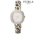 正規品 フルラ ティーヴィーシェイプ レディース 腕時計 WW00048010L4 FURLA TV SHAPE アナログ シルバー ゴールド ◆FURLA(フルラ)は、1927年にイタリア・ボローニャでアルド・フルラネットにより創立されました。カラフル、ジョイフル、コンテンポラリーなイタリアのライフスタイルを、バッグやアクセサリーなどのアイテムへ投影させています。伝統的なクラフトマンシップ、熟練したアルチザンの持つ専門知識、そして革新的なデザインを礎に、2017年に創業90周年を迎えました。素晴らしい品質基準は、今や世界中から定評を得ています。 ロゴを文字盤に落とし込んだ、目を引くモデル。アクセサリーのようなベルトデザインもポイントで、手元を華やかに演出します。年代問わずお使いいただけ、自分へのご褒美や誕生日、記念日などのプレゼントにもおすすめです。