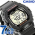 | 仕様 | 10気圧防水 3軸加速度センサーによる歩数計測機能 ・歩数表示範囲:0〜999,999歩 ・目標達成率表示(目標歩数設定範囲:1,000〜50,000歩、1,000歩単位) ・歩数グラフ(1時間毎の歩数を7時間分6段階でレベル表示) ・ステップインジケーター表示 ・歩数履歴表示 ・パワーセービング機能(一定時間動きが無いと自動的にセンサーをスリープ状態にし節電) デュアルタイム(ホームタイムとの時刻入替機能付き) ストップウオッチ(1/100秒(1時間未満)/1秒(1時間以上)、24時間計、ラップ/スプリット付き、計測データを最大200本メモリー(計測月・日・時・分、ラップ/スプリットタイム)) タイマー(セット単位:1秒、最大セット:60分、1秒単位で計測) 時刻アラーム5本・時報 LEDバックライト(残照機能、残照時間切替(1.5秒/3秒)付き) LED:アンバー フルオートカレンダー 操作音ON/OFF切替機能 平均月差:±30秒 12/24時間制表示切替 |