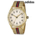 アディダス メンズ レディース 腕時計 AOSY23530 adidas CODE FOUR アナログ ホワイト ゴールド ブルー レッド 白 ◆スポーツ用品メーカーとしても知られる有名なブランドadidasより2001年、ストリートスポーツウエアブランド「adidas Originals (アディダス オリジナルス)」がスタート。1972年から1996年までadidas社のカンパニーロゴだったトレフォイルロゴ(三つ葉のロゴ)をシンボルマークとし、アスリートのために開発された復刻商品から、現在のトレンドを反映させた新作モデルやコラボレーション商品まで、幅広いアイテムを展開しています。 時代を超えて愛されるラウンドシェイプにシンプルなデザインのコード フォー。立体のアプライドマーカーを配したダイヤルは時刻を読み取りやすく、デイリーな使いやすさに考慮したオールマイティな腕時計です。