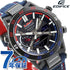 7年保証キャンペーン エディフィス EDIFICE ホンダレーシング コラボレーションモデル ソーラー Bluetooth ソーラー メンズ 腕時計 ECB-2000HR-1ADR Honda Racing Collaboration Model EDIFICE SOSPENSIONE アナデジ ブラック ブルー ◆世界最高峰の舞台で数々の感動を生み出し続けるHRC (Honda Racing Corporation)。そのレーシングスピリットを象徴するトリコロールをテーマに、レッド、ブルー、ホワイトのカラーリングをHonda監修のオリジナルデザインに落とし込んだコラボレーションモデルです。両面にアルカンターラを採用したバンドにはHondaのレーシングエンジンのバルブとコンロッドのラインドローイングがレーザーでマーキングされています。HRC、Hondaロゴも文字板、バンド、裏蓋などにレイアウトされ、Hondaレーシングスピリットを身につけられる仕様となっております。カーボンファイバー強化樹脂製のサスペンションアームデザインケース、Bluetoothによる自動時刻修正機能、アプリによる簡単操作、各種機能を駆動できるタフソーラーなどを搭載し、高い信頼性を誇ります。 国内モデル品番:ECB-2000HR-1AJR