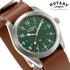 ロータリー コマンド メンズ 腕時計 GS05535/56 ROTARY COMMANDO アナログ グリーン ブラウン ◆ROTARYは、ロンドンのリージェント・ストリートに拠点を置く英国ウォッチブランドです。伝統的なスタイルを継承しつつ、「華美に走らない実質本意のモノ作り」の姿勢で、一世紀以上にわたり英国内で高く評価されています。 伝統に富んだCommandoコレクション。初期のフィールドウォッチからインスピレーションを得たコマンドーフィールドは、ロータリーの名高いミリタリーウォッチ製造の遺産に敬意を表しています。サンドブラスト加工のステンレススチールケースは、頑丈な耐久性を発揮し、実用性を強調する落ち着いたマット仕上げです。誕生日や記念日のプレゼントにもおすすめです。
