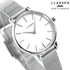 正規品 エルラーセン キャロライン 30mm デンマーク製 クオーツ ペアウォッチ レディース 腕時計 LL146SWSM LLARSEN CAROLINE アナログ ホワイト ◆LLARSEN(エルラーセン)は、デンマークの南西部の町、Svendborg(スヴェンボー)のアトリエで、企画・デザイン・製造を行っている、Made in Denmarkにこだわったブランドです。スタイリッシュかつ、エレガントでクラシカルなデザインを際立たせる高いクオリティは、デンマークが誇るクラフトマンシップに基づいています。上質な大人のための腕時計でありながら、手頃なプライスを維持することで、「日常的に腕時計を愛して欲しい」という願いを込めています。 腕元におさまる程よいケースサイズとシンプルかつ洗練されたデザインが特徴のモデル。スライド式のベルトは、ご自分でのベルト調節が可能です。また、ベルト裏面のつまみのついたバネ棒をスライドさせるだけの操作でバンドの取り外し、取り付けが簡単に行えます。気分や服装にあわせてお手持ちのベルトと付け替え、お楽しみいただけます。ペアウォッチや誕生日のプレゼントにもおすすめです。 ラースラーセン LARS LARSEN