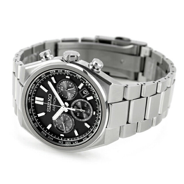 Genuine product, 7-year warranty campaign, free shipping, Seiko Astron Nexter World Time Titanium Chronograph Made in Japan Men's Watch SBXY097 SEIKO ASTRON Analog Black ◆Nexter A stylish chronograph entry model that stands out from solar radio waves. It follows the design code of the Nexter series, and features an advanced form with an integrated case/bracelet and a solid case design that matches your business style, making it a stylish sporty design. By adopting the caliber 8B92, a small diameter movement, it has a case diameter of 41.3mm and a thickness of 10.6mm, making it a perfect size that fits well in Japanese people's arms. The buttons at the 2/4 o'clock position have been updated to take the operability of the stopwatch into consideration. The buttons at 8/10 o'clock positions are semi-sinkable, giving them a clean and sophisticated look. The top surface of the titanium bezel, which accentuates the solid feel, has powerful vertical sizing, giving it a manly and stylish impression. The dial, which is the classic chronograph model, is color-coded with the sub-dials, and uses a highly textured vertical streak pattern that goes well with a solid design. Release date: Released in May 2025