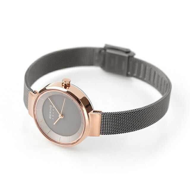 ベーリング ソーラー レディース 腕時計 14627-369 BERING SCANDINAVIAN SOLAR アナログ グレー ガンメタル ◆BERING(ベーリング)は、デンマークの冒険家Rene Kaerskov(レネ・ケルスコフ)によって2010年に創設。ブランド名は、大航海時代のデンマークの偉大な冒険家Vitus Bering(ヴァイタス・ベーリング)に由来。「品質が美しさを定義する」をコンセプトに、神々の土地と言われる北極から多くのインスピレーションを受けて創作。いつまでも美しく輝き、使い続けられる時計を作り続けています。 シンプルな機能と、ミニマルなデザインで人気のBERINGスカンジナヴィアンソーラーが、よりシンプルに洗練された印象のペアモデルとして登場しました。すり鉢状で立体的に見えるダイヤルに、余計な装飾のない上品な印象のバーインデックスと、3針を合わせました。