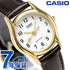 7年保証キャンペーン カシオ チープカシオ 海外モデル クオーツ レディース 腕時計 LTP-1094Q-7B4RDF CASIO アナログ ホワイト×ダークブラウン ◆お手頃な値段で機能性、耐久性に優れた「チープカシオ」。メンズ、レディース問わずデザインが豊富。軽くて薄いのに、丈夫なところも魅力のひとつです。 ラウンド型のフォルムにベーシックなデザインが特徴のモデル。シンプルな三針に、時間の読み取りがしやすいインデックスを採用。コロンとしたサイズ感に細身のレザーベルトが腕元を女性らしく演出します。カジュアルはもちろん、少しフォーマルな服装にも合わせてお使いただける、オンオフ問わないデザインです。ユニセックスモデルとのペアウォッチとしてもオススメ。 日本未発売モデル