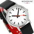 モンディーン クラシック ピュア スイス製 メンズ レディース 腕時計 A658.30323.16OMV MONDAINE アナログ ホワイト ブラック レッド 黒 ◆1951年、モンディーンは、「Frank & Bernheim」という時計の輸入販売を業務とする会社としてブラジルで設立され、1954年に社名をモンディーンに変更しました。1986年には、現クラシックコレクションとなる「スイス国鉄オフィシャル鉄道ウォッチ」を発表。その視認性の高さとシンプルで完成されたデザインは、誕生以来20年以上が経過した現在も世界中でロングセラーを記録しています。 2015年、1986年の登場以来初めて、SBBの文字もブランド名も一切入っていない、実際に駅舎に掲げられているクロックと同じ、ピュアなデザインのコレクションが誕生。葡萄の廃棄皮を再利用したグレープビーガンレザーを使用しています。