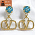 ヴァレンティノ VALENTINO 5W2J0H29 YCW 64X Vロゴ シグネチャー メタル クリスタル ピアス ゴールド/アクアマリーナ レディース アクセサリー VLOGO SIGNATURE STRASS PENDANT EARRINGS