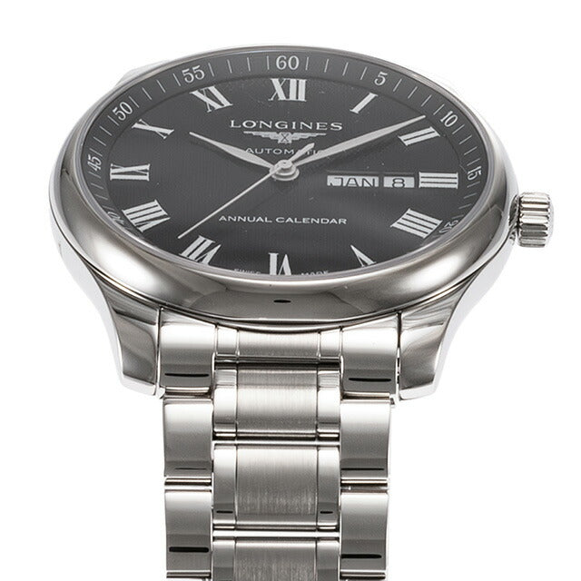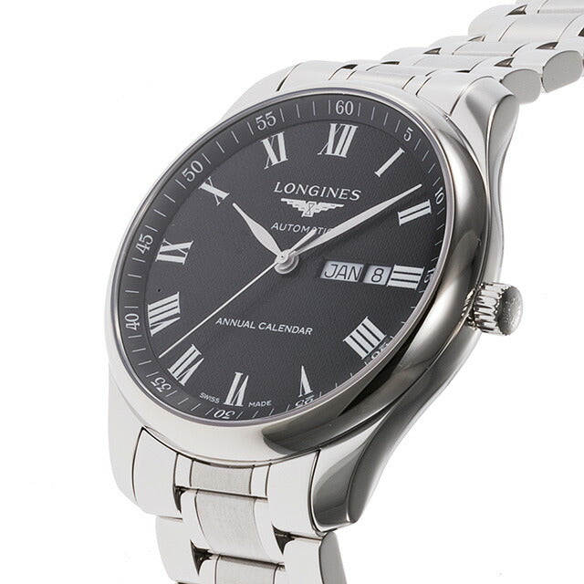 3年保証キャンペーン ロンジン マスターコレクション スイス製 メンズ 腕時計 L2.920.4.51.6 LONGINES MASTER COLLECTION アナログ ブラック 黒 ◆ロンジンは1832年に創業。翼のついた砂時計をシンボルに掲げています。スイスのサンティミエに拠点を置き、「伝統・エレガンス・パフォーマンス」をテーマに時計を製造。世界最大の時計メーカーのグループメンバーであるロンジンは、数多くの世界的なスポーツイベントの公式時計として、また国際的なスポーツ連盟のパートナーとして、エレガンスな時計を展開しています。 2005年に発表された、マスターコレクション。ロンジンの企業理念を体現し、クラシックなエレガンスと優れた品質を併せ持っています。カレンダー表示を搭載し、実用性にも優れています。 機械式腕時計