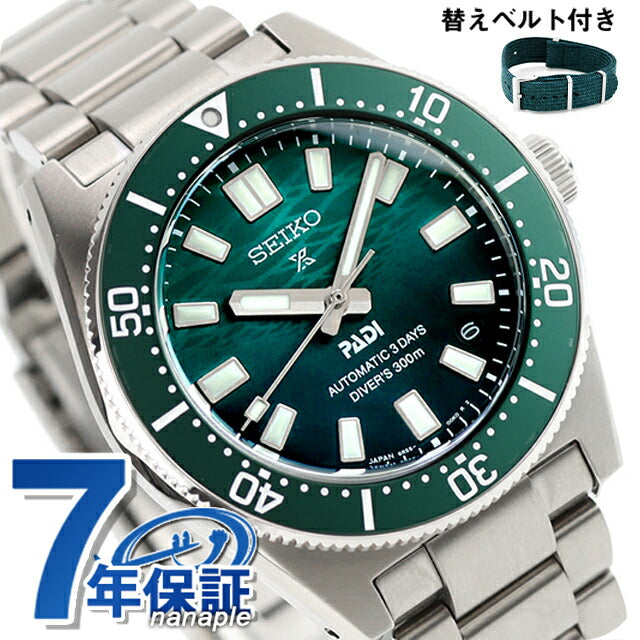 Genuine product, 7-year warranty campaign, free shipping, Seiko Prospex Diver Scuba Divers 1965 Heritage PADI Special Edition, Core Shop exclusive model, Distribution limited model, Diver's watch, Replacement belt, Made in Japan, Men's Watch, SBDC205 SEIKO PROSPEX Analog Green Gradation ◆A compilation series symbolizing the partnership between Prospex and PADI, a special edition with a beautiful desire for the sea has been released. The beautiful emerald green gradient dial features the motif of the falling light and the swaying of the water surface as seen from underwater. Equipped with a newly developed diver adjuster buckle with double lock. High quality and easy operation allows you to adjust the size of your arms. Comes with a recycled nylon fabric strap upcycled from discarded fishing nets. Release date: Released in July 2025 Mechanical wristwatch