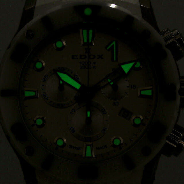 エドックス クロノオフショア1 チタン クロノグラフ スイス製 メンズ チタン クロノグラフ 腕時計 10242-TINB-BBUINR エドックス CHRONOFFSHORE-1 チタン クロノグラフ ホワイト 白 ラバー ◆スイスの優秀な時計職人だったクリスチャン・リュフリ・フルーリーは、妻ポーリーンの誕生日に彼自身がデザインして作った懐中時計をプレゼントします。これがきっかけとなり、1884年にエドックスを設立しました。 過去から現在まで積み上げてきた技術的裏付けと、独自性の高い時計を作るノウハウを1世紀以上かけて熟成したからこそ、群雄割拠のスイス時計業界において確固たる地位を築いています。 パワーボートレースのタフでダイナミックな世界観を表現した、機能性と防水性に優れたダイバーズウォッチ。高い防水性を備え、スポーツシーンなど高い水圧が生じ得る環境での使用が可能。ベゼル部分にハイテクセラミックベゼルを採用。サファイアと同等の高硬度でキズへの耐性に優れ、腐食や変形から守ってくれるだけでなく、光沢があり時計の外観を美しく保ってくれます。