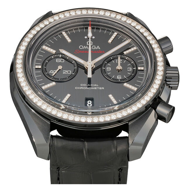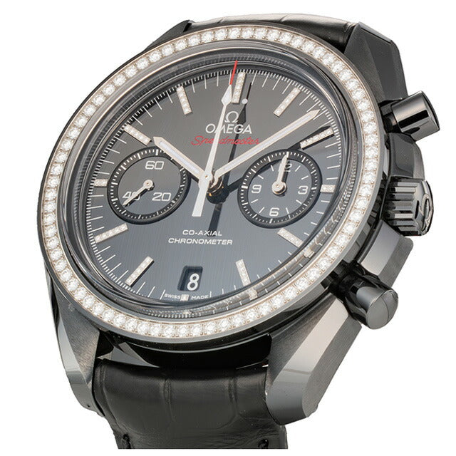 5年保証キャンペーン オメガ スピードマスター ダーク サイド オブ ザ ムーン 44.5mm クロノグラフ スイス製 レディース 腕時計 311.98.44.51.51.001 OMEGA SPEEDMASTER Dark side of the moon アナログ ブラック 黒 ◆オメガは1848年、ルイ・ブランがスイスに時計工房を創設したことから始まります。1894年に発表した懐中時計のムーブメント、「Ω(オメガ/達成と極致の意)」という言葉を正式な社名として採用しました。 ブラックセラミックを基調としたケースは、深い漆黒と強度を兼ね備え、耐久性と高級感を両立させます。ベゼルにはダイヤモンドがセッティングされ、文字盤にもダイヤモンドインデックスを配し、視線を集める華やかな演出が施されています。高級感、精度、存在感、そのすべてを求める方にふさわしい逸品です。 機械式腕時計