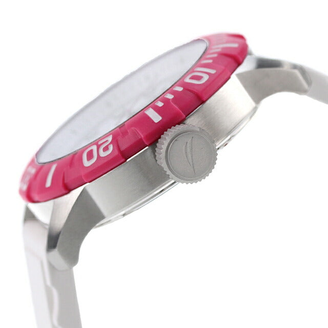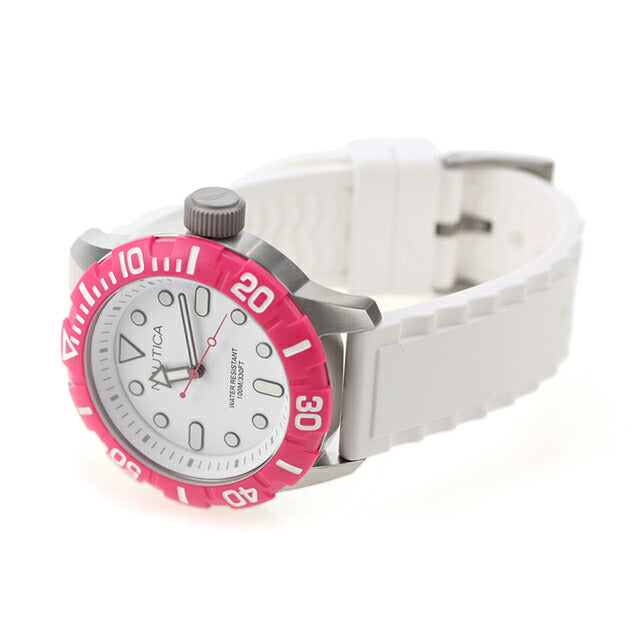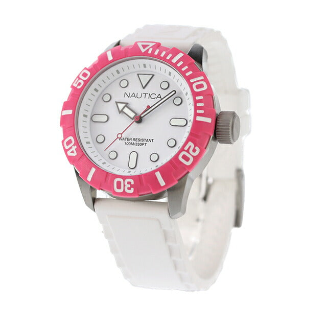 正規品 7年保証キャンペーン ノーティカ NSR100 ジェリー セット 腕時計 A11603G NAUTICA NSR100 JELLY SET クオーツ ホワイト×ピンク ノーティカは1983年にニューヨークで誕生したアメリカンライフスタイルブランドです。メンズ、レディース、キッズのウェアをはじめ、ファッショングッズやアクセサリー、ホームファブリックにいたるまで、ファミリーで親しめるアイテムを幅広くラインナップ。モダンで洗練されたマリンスタイリングを得意とし、その魅力をあますことなく表現したノーティカウォッチは、世界最大級の時計会社グループによる革新的な最先端技術がもたらす高品質・高性能を併せ持っています。 本格派のダイバーズウォッチのデザインをベースに、エネルギーや癒しを視覚から与えるビタミンカラーを取り入れたカジュアルなスポーツモデル。POPなアイキャッチのトイウォッチ風でありながら、ねじ込み式リューズとケースバックを備えた100m防水の本格スペック。プレッピーなスタイルに好相性。ファッションの差し色としてお楽しみ頂けます。