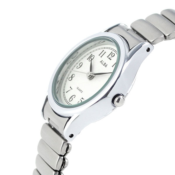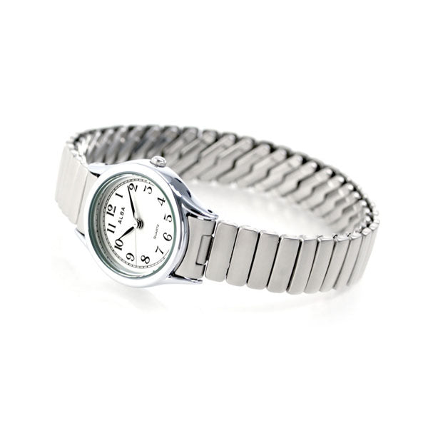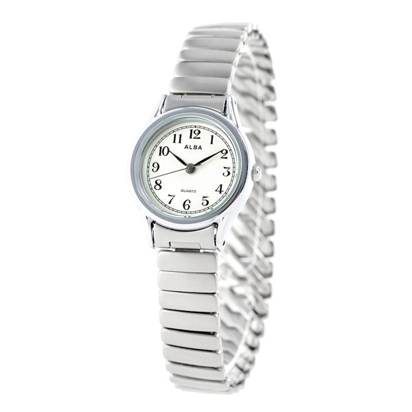 正規品 7年保証キャンペーン セイコー アルバ クオーツ ペアウォッチ レディース 腕時計 AQHK439 SEIKO ALBA アナログ ホワイト×シルバー アルバは、スタンダードなデザインからスポーティなデザインまで、幅広い年齢層に向けたクオーツウォッチを展開。見やすさと使いやすさに加え、それぞれのシーンにあった飽きのこないデザインが魅力です。 視認性の良いアラビア数字インデックスを採用。落ち着きのある定番カラーは様々なシーンで活躍します。バンドには伸縮性のある蛇腹ベルトを採用。メンズモデルとのペアウォッチとしてもオススメです。 旧品番:AADT065