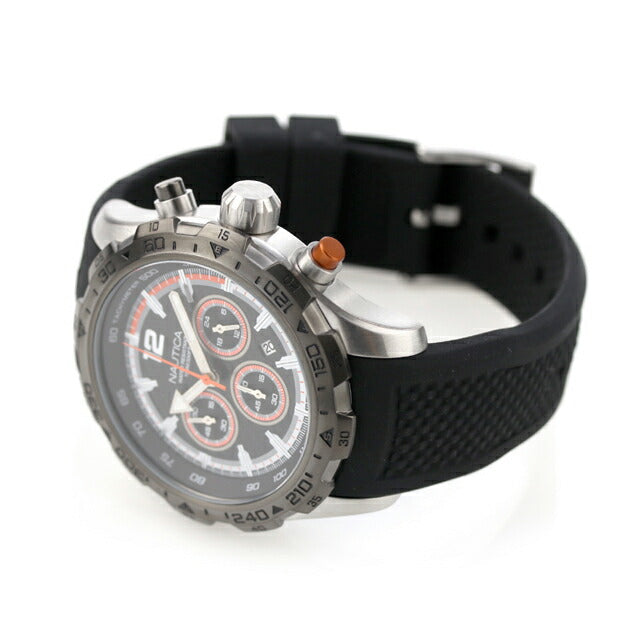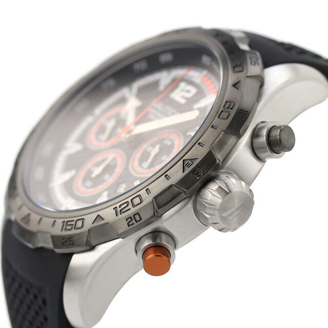正規品 7年保証キャンペーン ノーティカ エヌエスティ― クロノグラフ メンズ 腕時計 NAPNSS402 NAUTICA NST アナログ ブラック 黒 ◆ノーティカは1983年にニューヨークで誕生したアメリカンライフスタイルブランドです。モダンで洗練されたマリンスタイリングを得意とし、その魅力をあますことなく表現したノーティカウォッチは、世界最大級の時計会社グループによる革新的な最先端技術がもたらす高品質・高性能を併せ持っています。 この「NST/エヌエスティ―」ウォッチはテクスチャード加工の文字盤と新色でアップデートされました。コントラストのあるサブダイヤルとスイープにマッチするプッシャーで作られたこのタイムピースは、大胆な46mmリサイクルステンレススチールケースとシリコンストラップを備えています。