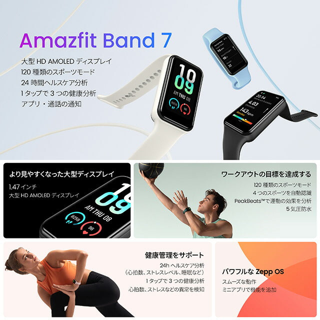 アマズフィット Band 7 充電式クオーツ スマートウォッチ メンズ レディース Bluetooth Amazfit SP170049-C15 デジタル ベージュ 記念品 プレゼント ギフト SP170049-C15