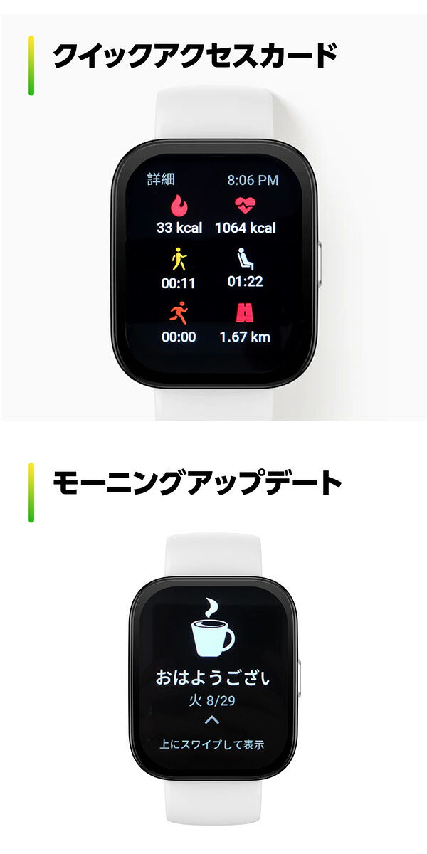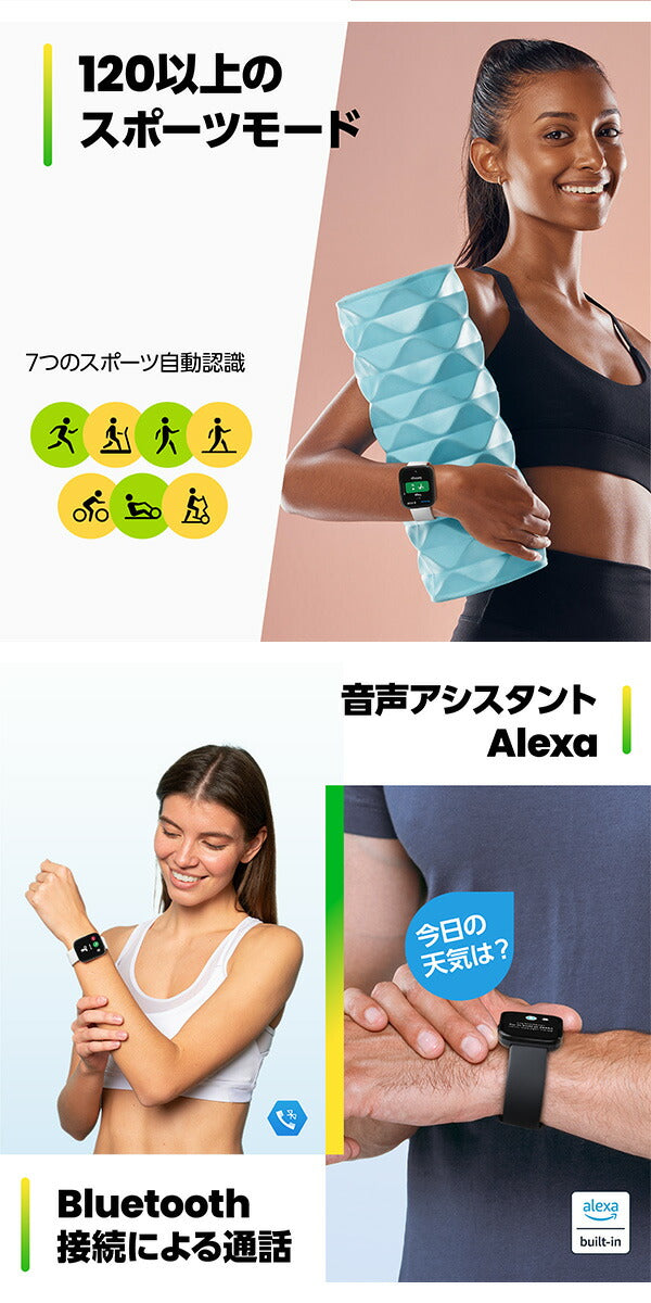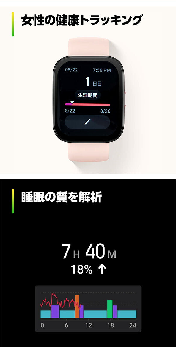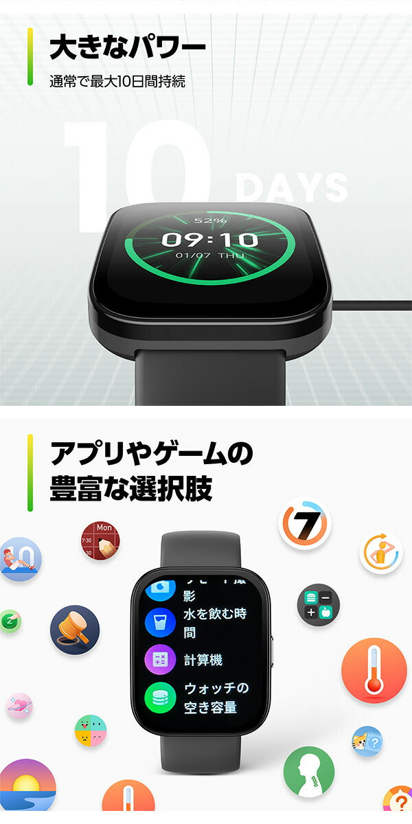 | 仕様 | <バッテリー> バッテリー容量:300 mAh(標準値) 充電方法:マグネット式充電 充電時間:約2時間 <スポーツ機能> スポーツモード:120 <ヘルス機能> 24時間モニタリング:心拍数/血中酸素レベル/ストレスレベル 手動測定:心拍数/血中酸素レベル/ストレスレベル/ワンタップ測定(3つの健康指標) 睡眠の質のモニタリング:睡眠段階(REMを含む) 昼寝の時間/睡眠時の呼吸の質/睡眠スコア 健康評価システム:PAI 呼吸エクササイズ:有 生理周期トラッキング:有 健康リマインダー:心拍数の異常/低血中酸素/高ストレスレベル/呼吸エクササイズ/座り過ぎのリマインダー <センサー> 健康:BioTracker PPG 生体認証センサー (血中酸素をサポート) 運動:3軸加速度センサー 接続:Bluetooth 5.2 BLE 測位システム:4衛星測位システム GPS、GLONASS、GALILEO、QZSS モーター:ローターモーター <その他> ミニアプリ:対応※一部日本語非対応 スリープモード:有 オフライン音声アシスタント:無 Alexa(日本語対応):有 ウォッチフェイス:50+ アプリ:Zeppアプリ ※タブレット未対応 搭載OS:Zepp OS 2.0以上 対応デバイス:Android 7.0 以上、iOS 14.0 以上 |