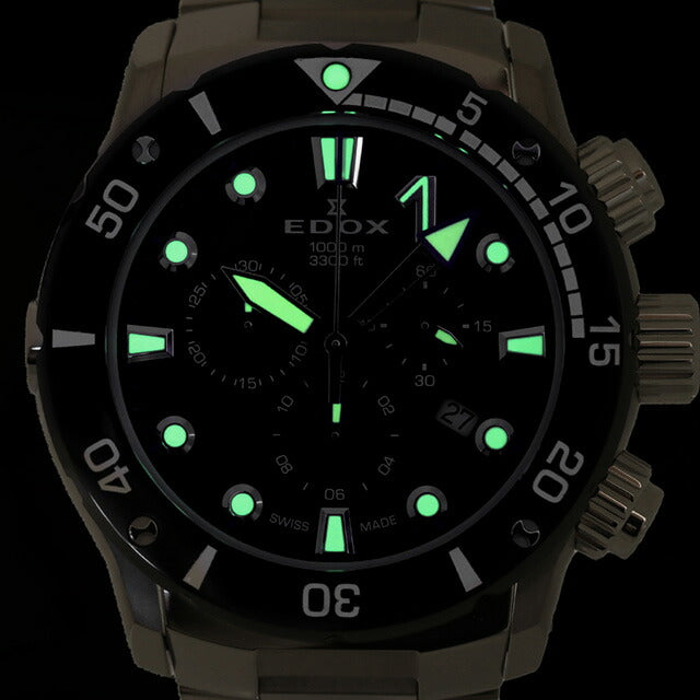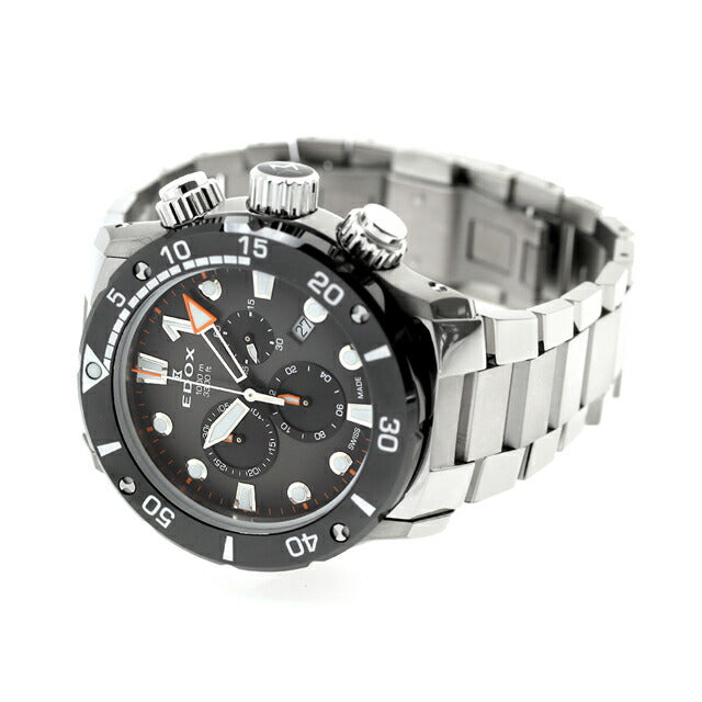 エドックス クロノオフショア1 CO-1 チタン クロノグラフ スイス製 メンズ 腕時計 10242-TINM-GIDNO EDOX CO-1 CHRONOGRAPH アナログ ブラック 黒 ◆スイスの優秀な時計職人だったクリスチャン・リュフリ・フルーリーは、妻ポーリーンの誕生日に彼自身がデザインして作った懐中時計をプレゼントします。これがきっかけとなり、1884年にエドックスを設立しました。 過去から現在まで積み上げてきた技術的裏付けと、独自性の高い時計を作るノウハウを1世紀以上かけて熟成したからこそ、群雄割拠のスイス時計業界において確固たる地位を築いています。 パワーボートレースのタフでダイナミックな世界観を表現した、機能性と防水性に優れたダイバーズウォッチ。高い防水性を備え、スポーツシーンなど高い水圧が生じ得る環境での使用が可能です。