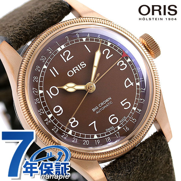 正規品 7年保証キャンペーン オリス ビッグクラウン ポインターデイト 40mm スイス製 自動巻き メンズ 腕時計 754-7741-3166LBR ORIS BIG CROWN POINTER DATE アナログ ブラウン 革ベルト ◆ORIS(オリス)は、ポール・カッティン氏とジョージ・クリスチャン氏の2人によってスイスのヘルシュタインで創設されました。近くを流れる小川にちなんで社名をオリスと命名。手頃な価格ながら、革新的で高機能かつ実用的な機能を備えた本格機械式時計で知られ、世界中の時計ファンから愛されているブランドです。 オリスと航空を結びつけたビッククラウンは、1938年誕生以来パイロットウォッチの原型になったコレクション。時代を超越したオリジナルモデルへの忠実なオマージュです。ビッグクラウンポインターデイト誕生80周年を記念したモデル。パイロットがグローブを着けたまま操作できる大型リューズ(クラウン)とセンター針で日付を示す特殊なコンプリケーションを備えた、先駆的な時計です。カジュアルスタイルにはもちろん、クラシックな大人の装いにも味わいを添えてくれます。 機械式腕時計