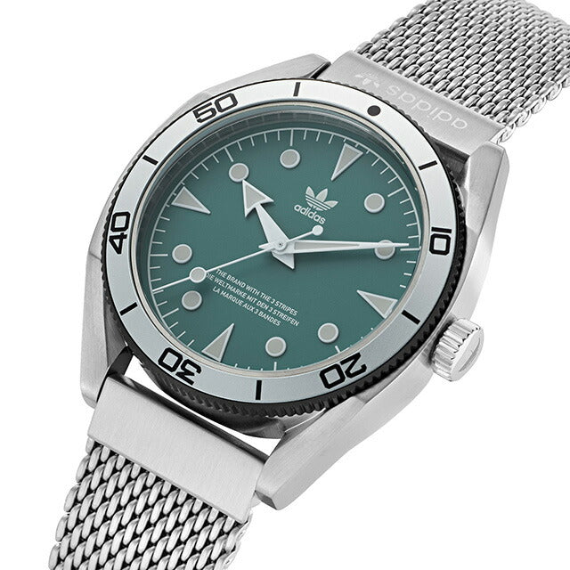 アディダス メンズ 腕時計 AOFH22005 adidas EDITION TWO アナログ グリーン ◆スポーツ用品メーカーとしても知られる有名なブランドadidasより2001年、ストリートスポーツウエアブランド「adidas Originals (アディダス オリジナルス)」がスタート。1972年から1996年までadidas社のカンパニーロゴだったトレフォイルロゴ(三つ葉のロゴ)をシンボルマークとし、アスリートのために開発された復刻商品から、現在のトレンドを反映させた新作モデルやコラボレーション商品まで、幅広いアイテムを展開しています。 スポーツウェアにルーツを持つ、 洗練されたデザインの腕時計。アディダス オリジナルスのスポーツウェアとしてのDNAが随所に感じられる、ステートメントピース。防水ケースを備えており、様々なアクティビティにも対応できる、普段使いにぴったりのモデルです。