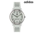 アディダス メンズ レディース 腕時計 AOSY23033 adidas Code Three アナログ シルバー ホワイト 白 ◆スポーツ用品メーカーとしても知られる有名なブランドadidasより2001年、ストリートスポーツウエアブランド「adidas Originals (アディダス オリジナルス)」がスタート。1972年から1996年までadidas社のカンパニーロゴだったトレフォイルロゴ(三つ葉のロゴ)をシンボルマークとし、アスリートのために開発された復刻商品から、現在のトレンドを反映させた新作モデルやコラボレーション商品まで、幅広いアイテムを展開しています。 スポーティーで洗練されたデザインが特徴の腕時計。文字盤には、視認性の高いインデックスとアディダスのトレフォイルロゴが配置され、シンプルながらも存在感のあるデザインとなっています。