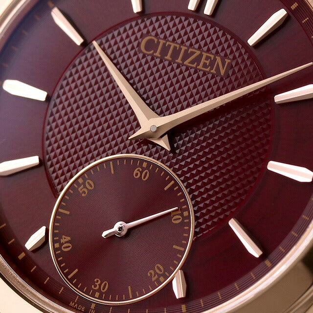 正規品 7年保証キャンペーン 送料無料 シチズン エコドライブ ワン 光発電エコ・ドライブ 限定モデル エンジ スモールセコンド 数量限定モデル ソーラー 日本製 光発電エコドライブ 光発電エコ・ドライブ メンズ レディース 腕時計 AQ5012-14W CITIZEN Eco-Drive One アナログ レッドブラウン 赤 ◆圧倒的な薄さを実現し、美しさと快適な装着感にこだわるドレスウオッチシチズン Eco-Drive One(エコドライブ ワン)。世界最薄の機能美。薄さ1.00mmムーブメントに80を超えるパーツを収めた、極薄フォルムの心地よい装着感と、しっとりとした大人らしさを感じさせるデザイン。スモールセコンドモデルの限定カラーです。バーガンディーカラーでピンクゴールドのケースを包み込むことで、深く暖かみのある上質な世界観を演出しています。バンドは、LWG認証を受けたタンナーから仕入れた上質なワニ革を使用。環境への配慮や製造工程における安全性など厳格な国際基準をクリアしています。上質な大人の装いに映える一本です。 発売日:2024年1月発売