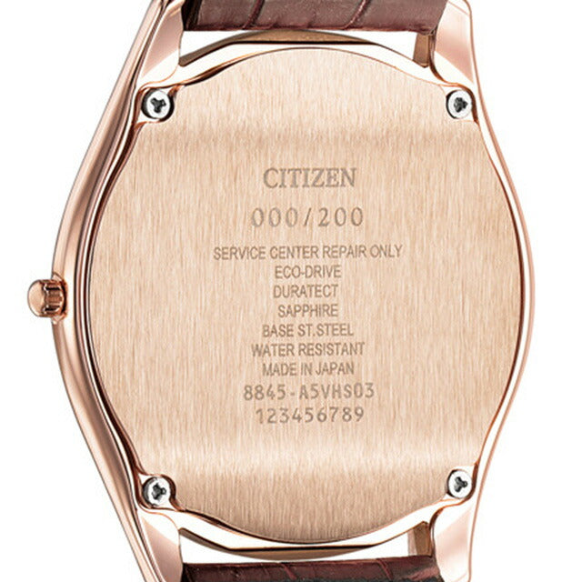 | 仕様 | 日常生活用防水 平均月差±15秒 クイックスタート機能 充電警告機能 過充電防止機能 充電禁止温度検出機能 駆動期間:フル充電時約7ヶ月可動 裏ぶたリミテッドエディションナンバー入 数量限定200個 日本製 |