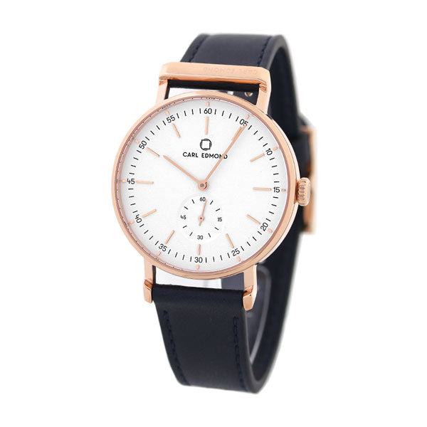 正規品 カール エドモンド リョーリット 36mm スモールセコンド 小秒針 クオーツ ペアウォッチ ユニセックス メンズ レディース 腕時計 CER3611-BLR18 CARL EDMOND RYOLIT アナログ ラウンド ホワイト×ブルー 革ベルト ◆CARL EDMOND(カール・エドモンド)は、スイスのクリエイティビティと北欧のミニマリズムが美しく融合した、スウェーデンのウォッチブランドです。ブランド名は、スウェーデンで一般的な名前のひとつ「カール」と、古期フランス語で幸せや喜び、裕福などを意味する「エドモンド」を掛け合わせたもの。スイス人の著名ウォッチデザイナーのエリック・ジローとエイドリアン・グレッシングが手掛けた、男女問わずさまざまなシーンに対応するミニマルデザインが特徴です。 ラウンド型が特徴のRyolitシリーズ。上部にシグネチャープレートが付いたアシンメトリーの形状もポイントです。また、ベルト裏面のつまみのついたバネ棒をスライドさせるだけの操作でバンドの取り外し、取り付けが簡単に行えます。ペアウォッチとしてはもちろん、プレゼントにもおすすめです。