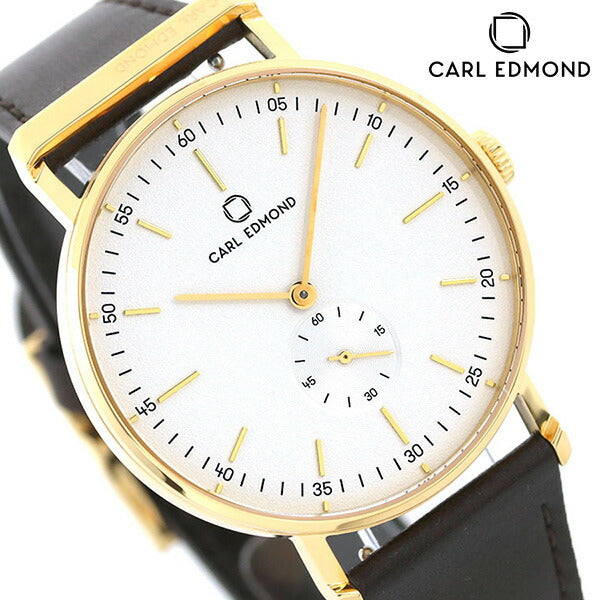 正規品 カール エドモンド リョーリット 40mm スモールセコンド 小秒針 クオーツ ペアウォッチ メンズ 腕時計 CER4021-DBY21 CARL EDMOND RYOLIT アナログ ラウンド ホワイト×ダークブラウン 革ベルト ◆CARL EDMOND(カール・エドモンド)は、スイスのクリエイティビティと北欧のミニマリズムが美しく融合した、スウェーデンのウォッチブランドです。ブランド名は、スウェーデンで一般的な名前のひとつ「カール」と、古期フランス語で幸せや喜び、裕福などを意味する「エドモンド」を掛け合わせたもの。スイス人の著名ウォッチデザイナーのエリック・ジローとエイドリアン・グレッシングが手掛けた、男女問わずさまざまなシーンに対応するミニマルデザインが特徴です。 ラウンド型が特徴のRyolitシリーズ。上部にシグネチャープレートが付いたアシンメトリーの形状もポイントです。また、ベルト裏面のつまみのついたバネ棒をスライドさせるだけの操作でバンドの取り外し、取り付けが簡単に行えます。ペアウォッチとしてはもちろん、プレゼントにもおすすめです。