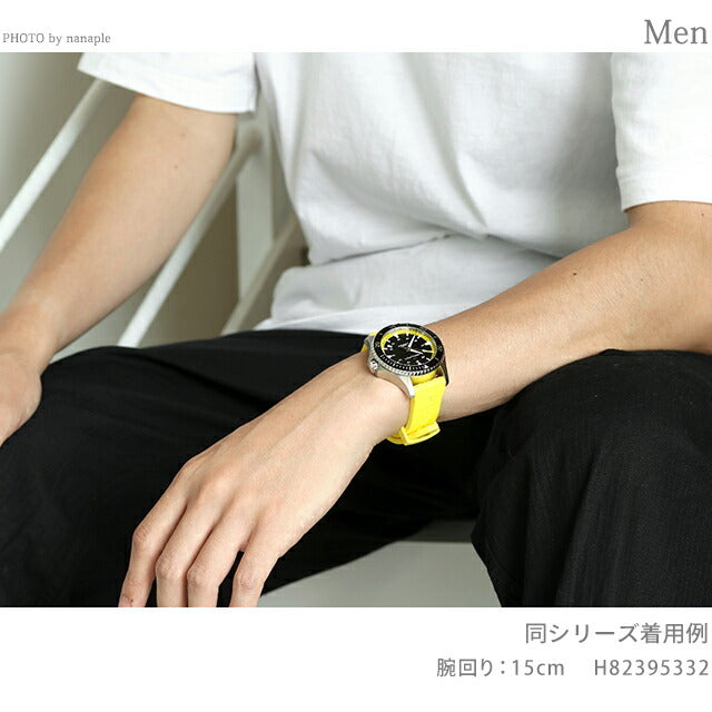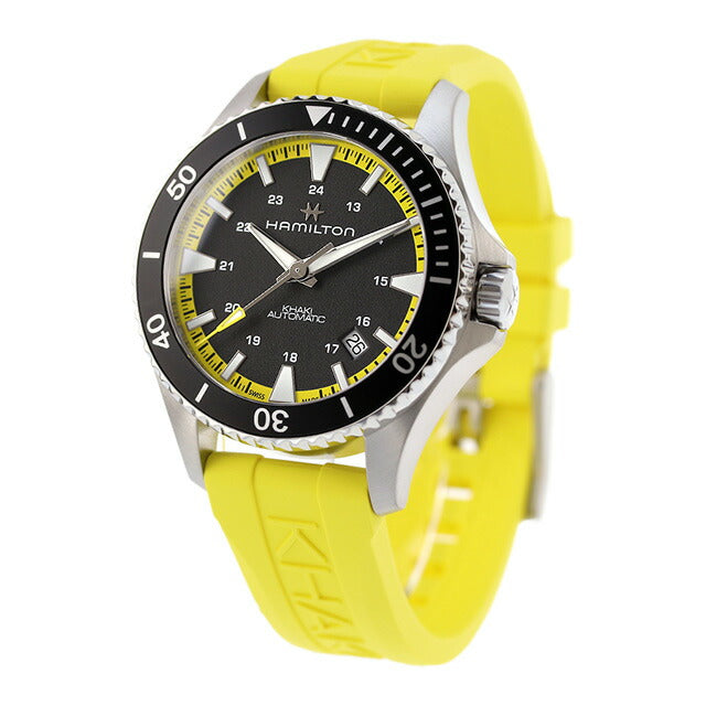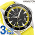3年保証キャンペーン ハミルトン カーキ ネイビー スキューバ オート 40mm スイス製 メンズ レディース 腕時計 H82395332 HAMILTON KHAKI NAVY Scuba Auto アナログ ブラック イエロー 黒 ◆HAMILTON(ハミルトン)はアメリカ発祥の老舗ブランドです。創業翌年に誕生した懐中時計「ブロードウェイ・リミテッド」は、他の時計よりも正確に時を刻むことから鉄道用時計として採用されました。その後も航空用時計や軍用時計として採用されるなど、品質の高さと流行にながされない独自のデザインが世界中の人々に支持されています。 ビーチサイド、プールサイド、深海での遊泳。「カーキ ネイビー スキューバ」は、水中での使用を想定したスタイルを提案します。アシッドイエローのラバーストラップと、コントラストの効いたブラックダイヤルを備え、船乗り、シュノーケラー、サーファー、ビーチを愛する人々にとって、機能的で注目のモデルとなっています。水泳やランニングのタイム、もしくは太陽の下にいた時間を測る時も、上がり続ける気温の中であなたをクールに見せ続けてくれるでしょう。 機械式腕時計