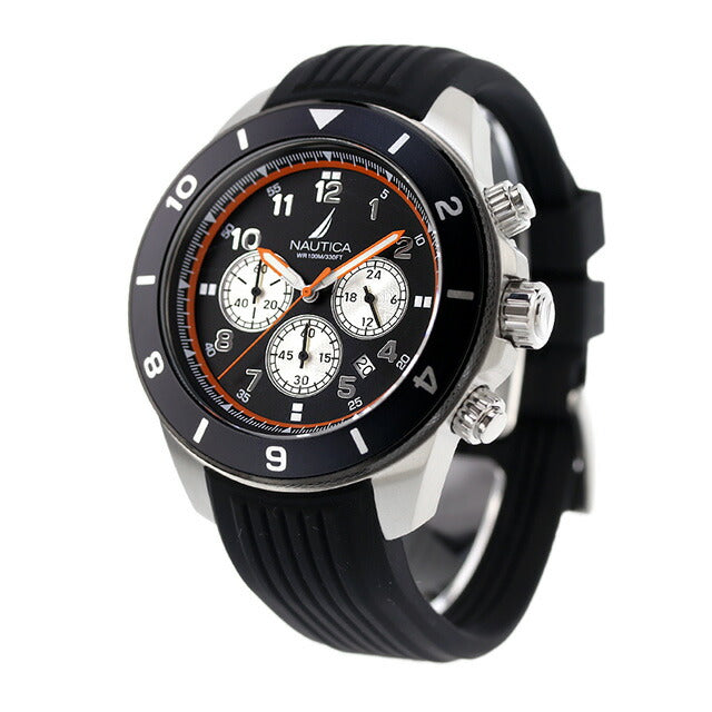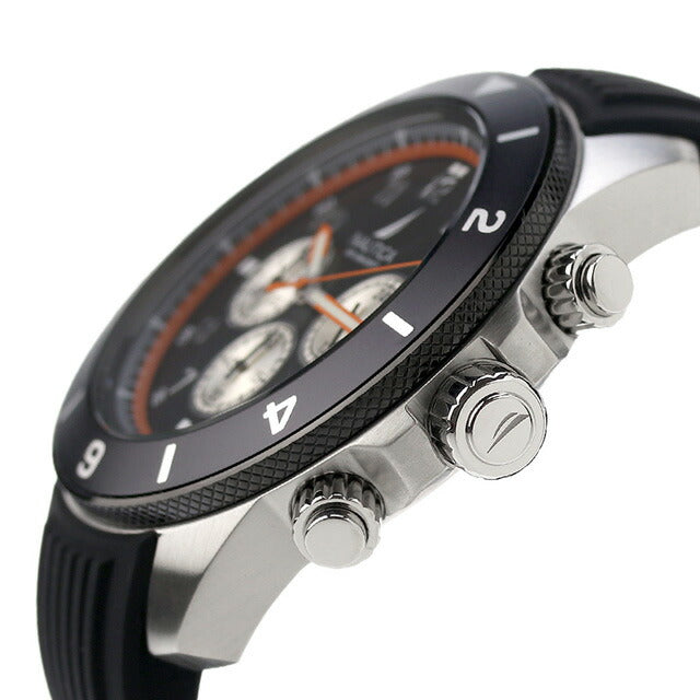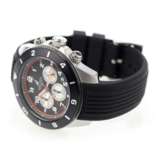 正規品 7年保証キャンペーン ノーティカ ノーティカワン クロノグラフ メンズ 腕時計 NAPNOS403 NAUTICA NAUTICA ONE アナログ ブラック 黒 ◆ノーティカは1983年にニューヨークで誕生したアメリカンライフスタイルブランドです。モダンで洗練されたマリンスタイリングを得意とし、その魅力をあますことなく表現したノーティカウォッチは、世界最大級の時計会社グループによる革新的な最先端技術がもたらす高品質・高性能を併せ持っています。 「NAUTICA ONE/ノーティカワン」は、IPメッキの印象的なトップリングのデザイン。インナーリングとリサイクルステンレススチールケースのコントラストカラーが特徴のこのタイムピースは、洗練されたクロノグラフムーブメント、日付窓、シリコンストラップを備えています。