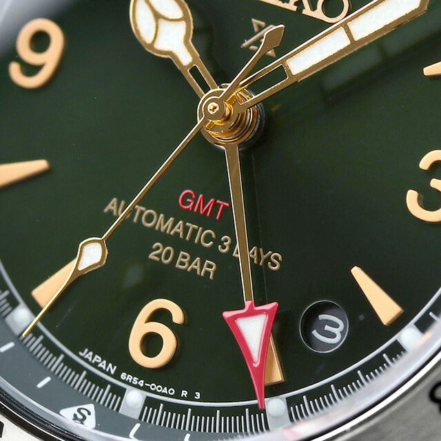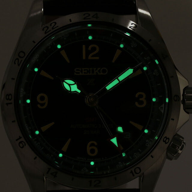 正規品 7年保証キャンペーン 送料無料 セイコー プロスペックス アルピニスト メカニカル GMT レギュラーモデル コアショップ専用 日本製 メンズ 腕時計 SBEJ005 SEIKO PROSPEX Alpinist アナログ グリーン ブラック 黒 ◆ロングセラーのアルピニスト内転リング付きコアデザインに、6R54(3Days)メカニカルGMTムーブメントを搭載したスペックアップモデルが登場。コンセプトは、プレミアム仕様のアルピニスト。アルピニスト内転リング付きコアデザインに、ロングパワーリザーブとGMT機能を備えた6R最上位キャリバーを搭載。デザイン、スペックともに進化を遂げた、プレミアムスポーツウオッチ仕様のアルピニスト メカニカルGMTです。3Days GMT×簡易方位計:フィールドウオッチとしての機能と世界観の融合。3日間(約72時間)のロングパワーリザーブとGMT機能を備えた高い信頼性と実用性を発揮するCal.6R54を搭載。24時針(GMT針を24時針として使用する場合)と簡易方位計を組み合わせて使用することで、容易な操作で方角の把握が可能に。確かな判読性と視認性を持ったアルピニストの新しいデザイン先端が赤い24時針とヘアライン仕上げのベゼル上に配された24時間表記が、GMTウオッチとしての高い判読性を実現。アルピニストのアイコンであるくさび形のインデックスを継承しつつも、クロスライン上にアラビアインデックスを配置することで視認性を追及。プレミアムスポーツウオッチに相応しいディテールダイヤル:植字のインデックスを採用することで立体感と高級感を追及。サファイアガラス:現行シリーズで採用されているフラット形状から、クラシカルな装いを惹き立てるカーブ形状に変更。バンド:高級機ならではの厚みと艶のあるレザーストラップを採用。ケース:ダイヤシールド加工を施すことで小傷が付きにくく、美しい外観の維持にも配慮。 発売日:2023年10月発売