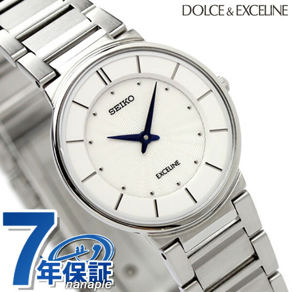 正規品 7年保証キャンペーン 送料無料 SEIKO エクセリーヌ クオーツ ペアウォッチ レディース SWDL147 DOLCE&EXCELINE 腕時計 シルバー ドルチェ&エクセリーヌは上品なドレスウォッチを展開するセイコーブランドです。スタイリッシュなデザインは、大切な人との時間を、自分らしさをスマートに演出します。 モダンでスタイリッシュな大人の男女に似合う、洗練されたデザインが特徴のペアシリーズ。ガラスには傷つきにくいだけでなく、輝きが良く透明度の高いサファイアガラスを採用。腕にフィットするシンプルな薄型ケースや、視認性に優れた質感の高いダイヤルデザインは、セイコーが長年培ってきたクオーツならではの技術です。