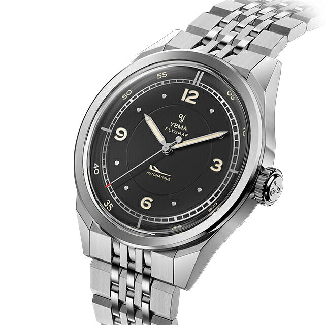 正規品 イエマ フライグラフパイロット2025 フランス製 メンズ 腕時計 YFLY25-AMS YEMA FLYGRAF アナログ ブラック 黒 ◆YEMA(イエマ)は、1948年以来のフランスの歴史的なブランドです。YEMAワークショップは、スイス国境沿いのジュラ山塊のオードゥーにあり、フランスの小さな町モルトーを拠点としています。歴史的および地理的要素により、フランスの時計製造会社YEMAは独自の「メゾン」機械式ムーブメントを設計することができました。 YEMAの象徴的なモデルをネオヴィンテージ風に再解釈したもので、航空のスピリットを捉えながら手首に洗練された存在感を放つデザイン。特徴的なケースが時計のレトロな雰囲気を際立たせ、バランスの取れたセクターダイヤルは視認性を高め、1930年代と1940年代のクラシックな航空時計へのオマージュを捧げています。 機械式腕時計