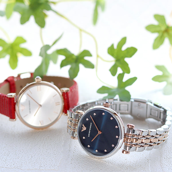 日常使いからビジネス、パーティーにまでシーンを問わずお使いいただけます。 エンポリオ・アルマーニは、モード界で大活躍したGIORGIO ARMANI(ジョルジオ・アルマーニ)の若者向けセカンドラインとして「装うことを楽しく遊ぼう」をコンセプトに発表されました。 実際に手にとってみると、洗練されたシルエットは細やかに創り込まれていることがわかります。 常に紳士服の機能性を応用し、女性らしい雰囲気、贅沢な素材と美しいシルエットに着心地の良さを追求し、そのコンセプトは腕時計などのアクセサリーにも引き継がれています。 商品番号:AR11092・AR1876 ななぷれ価格(AR11092)26,500円(税込) |