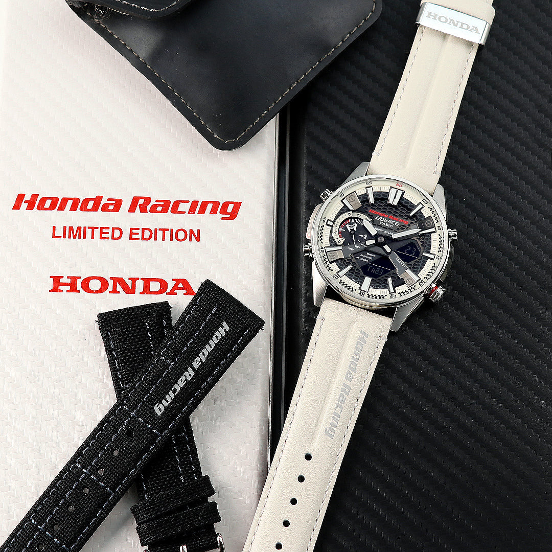 HondaのF1参戦最終年の2021年、その歴史とレーシングスピリットに敬意を表し、HondaのF1参戦の原点であるRA271をオマージュしたHonda Racing Championship White Edition。 RA271から始まった、同社レーシングスピリットを象徴するチャンピオンシップホワイトの本物の塗料を文字板外周リングに施すことで、Hondaの伝統を時計に込めました。 本革バンドは表面のホワイト、裏面の赤でRA271のカラーリングを表現。 また、ガラス外周にチェッカーフラッグをイメージしたパターン印刷も施しHondaの栄光を称えます。 正確な時刻表示に対応するスマートフォンリンク機能を搭載し、海外でも簡単に現地時刻に合わせられます。 (国内モデル品番:ECB-S100HR-1AJR) 商品番号:ECB-S100HR-1ADR ななぷれ価格 49,800円(税込) |