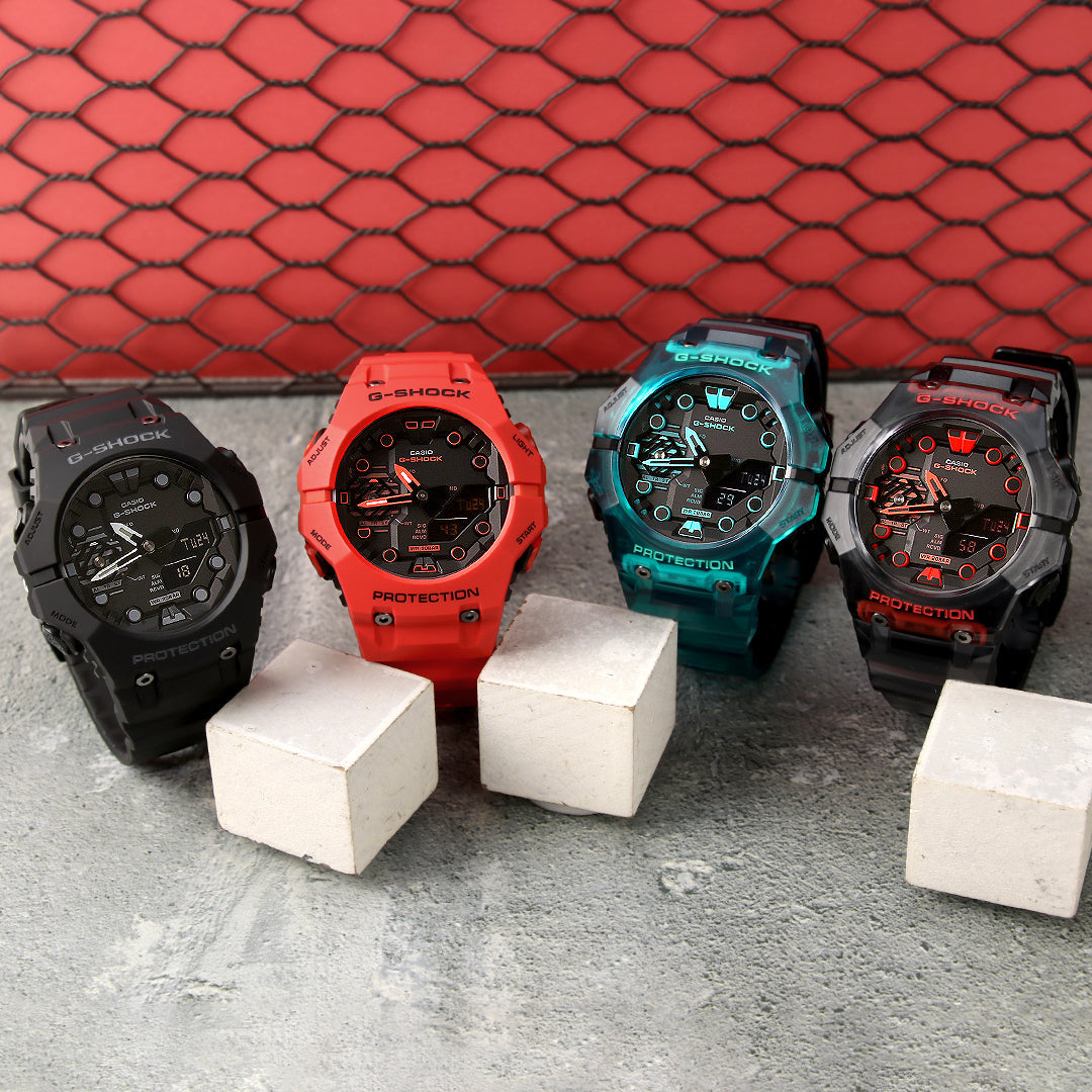 上下別々のベゼルから構成されたデザインを採用し、フェイスも時字や9時側ディスク針でディテールにもこだわった仕上がりとなっています。 ファッションからアウトドアシーンまで幅広く活用できるカラーリングを採用しました。 また、Bluetooth搭載により、専用のアプリを使って、スマートフォンと連携し、アプリ内の情報更新を時計の表示でお知らせします。 アウトドアシーンやカジュアルスタイルにおすすめです。 商品番号:GA-B001-1ADR・GA-B001-4ADR・GA-B001G-1ADR・GA-B001G-2ADR ななぷれ価格 (GA-B001-1ADR) 13,980円(税込) |