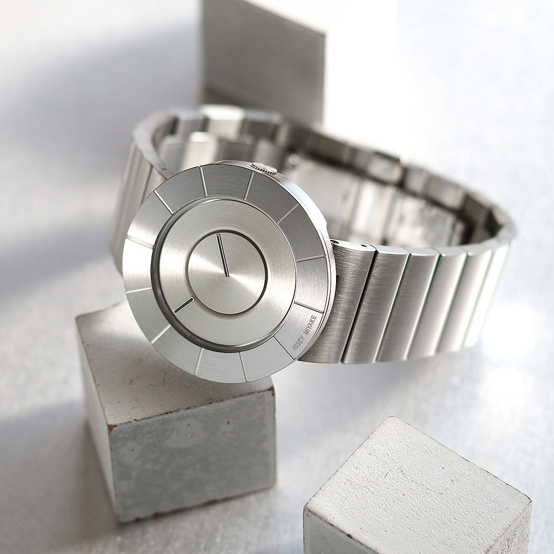 らくらくアジャスト仕様のモデルが登場。 金属の素材感を強調するため、文字板や針など一般的な時計のデザイン要素を極力排除し、シンプルかつモダンなウオッチに仕上げています。 ベゼル(外側)が時間を、インデックス(内側)が分を示しています。 1970年にデザイン事務所を立ち上げ、今では世界的に有名な日本人ファッションデザイナー、三宅一生がプロデュースするウォッチブランド「ISSEYMIYAKE(イッセイミヤケ)」。 商品番号:NY0N001・NY0N002 ななぷれ価格 44,000円(税込) |