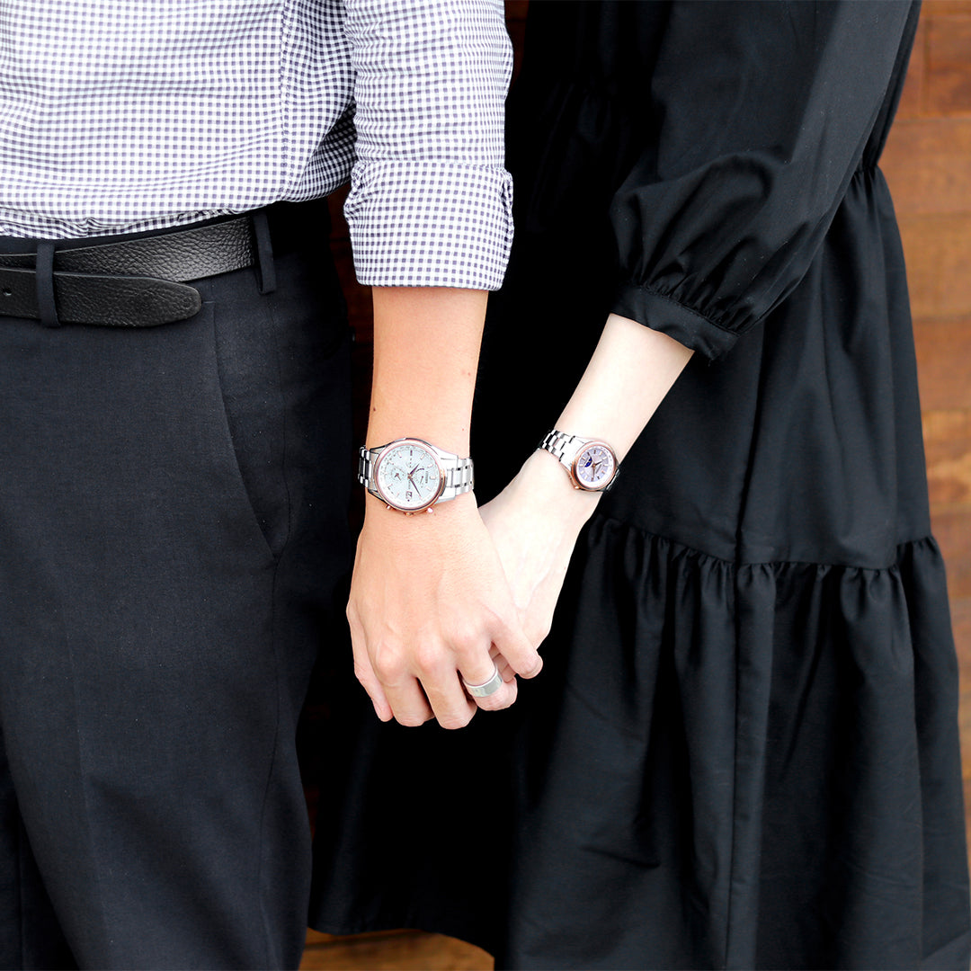 クオーツ時計では世界初のグランドコンプリケーションとして1999年に発売されたモデルをはじめ、歴史を彩るエポックメイキングなモデルへのオマージュを込めた、エコ・ドライブ電波時計です。 クラシカルな丸型プッシュボタンを採用。 ケースサイドに均一にザラツ研磨を当てることができ、ミラー仕上げの美しさを表現するとともに、視覚効果でケースを薄く見せます。 ベゼルには、エクシード30周年モデルから継承した、過去・現在・未来を象徴する特徴的な3連リングを採用しました。 プレゼントにもおすすめです。 確かな品質と洗練されたデザインによって唯一の価値を生み出すシチズン エクシードは、まさに「本物」を求める大人にふさわしい時計です。 商品番号:メンズ品番:AT9134-68W・レディース品番:EE1014-61W ななぷれ価格 308,000円(税込) |