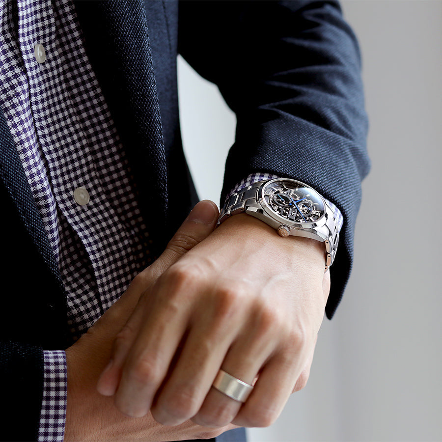 付属の替えベルトで雰囲気を変えてご使用いただけます。 重量感があり、スーツスタイルから、休日の大人カジュアルまで幅広く合わせることができます。 大切な方へのプレゼントはもちろん、自分へのご褒美にもおススメです。 オリエントスターは、1950年のオリエント創業と同時に輝ける星として生まれた代表的なブランドにふさわしく、歴史に裏付けされた技術と、ディテールにまで配慮した粋なデザインの機械式時計を展開。 ベーシックモデルからハイスペックモデルまで多彩なラインナップが魅力です。 商品番号:RK-AZ0102N ななぷれ価格 341,000円(税込) |
