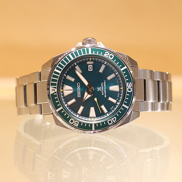 SAMURAIは武士道を貫く侍のように凛とした雰囲気を醸し出す。 刀で切り落として出来上がったような全体造形が、シャープで割り切りの良い、ダイバーズウオッチらしからぬ鋭さを持つデザインが特徴です。 SAMURAIのニックネームを持つデザインに、鮮やかなグリーンが特徴の特別カラーのモデルが新登場。 カジュアルスタイルからジャケットやスーツにも併せていただけます。 限られたショップのみで販売される流通限定モデルです。 誕生日・記念日・就職祝いなど、大切な方へのプレゼントにも人気! プロスペックスはリアルなスポーツシーンやアウトドアシーンに対応した、本格機能のスペシャルティ・スポーツウォッチを展開。 高性能・高品質は世界中で広く支持され、圧倒的な信頼性を誇っています。 商品番号:SBDY043 ななぷれ価格 59,000+税 |