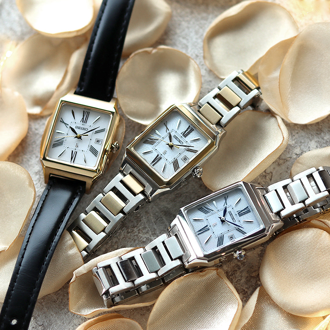 「角型×レディゴールド」は、おしゃれな女性が着けているイメージの象徴であり普遍的な組み合わせとなっております。 バランスの良い長角フォルムは堅苦しくなりすぎず、ワークシーンのジャケットスタイルから、オフのワンピーススタイルまで幅広いシーンで活躍する万能ウオッチです。 「カラーリリー」のフォルムをモチーフにしたりゅうずがアクセントとして輝く上質なデザインに。 りゅうずは、円錐状に広がるフォルム、さらにカットを入れることでカラーの花を表現。 花の中央部をイメージしたカットガラスをセッティングしました。 ダイヤルにはまっすぐに咲く「カラーリリー」の花の佇まいをイメージした細身のオリジナルローマフォントを6か所にレイアウト。 また、ダイヤルベースには花びらの質感をイメージした繊細なパターンをあしらい、腕元に華やぎと高揚感を与えます。 時分針は、デザインに合わせて、見やすく存在感がありつつも、女性らしい伸びやかさが特徴の新規ネクタイ形状を採用しています。 ブレスレットは角型ケースと相性が良く、スタイリッシュ感を高めてくれるデザインの駒を採用。 商品番号:SSVW210・SSVW209・SSVW212 ななぷれ価格:(SSVW210)49,200円(税込) (SSVW209)46,600円(税込) (SSVW212)49,200円(税込) 発売日:23年5月 |