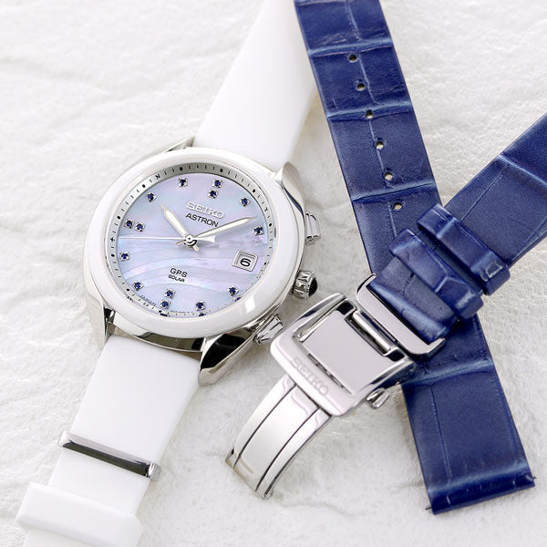 ホワイトセラミックスベゼルとホワイトシリコンストラップが調和し、露出した腕に涼しげな印象を与える開放的なデザインが特徴。 白蝶貝ダイヤルとセットされるブルーサファイアが煌めく海を、ダイヤルのダイナミックなパターンが波や海風を表現しています。 パールブルー仕上げのクロコダイルレザーストラップ付き。 ベルト裏面のつまみのついたバネ棒をスライドさせるだけの操作でバンドの取り外し、取り付けが簡単に行えます。 誕生日や記念日のプレゼントにもおすすめです。 限られたショップのみで販売されるモデルです。 商品番号:STXD005 発売日:20年7月24日 ななぷれ価格 286,000円(税込) |