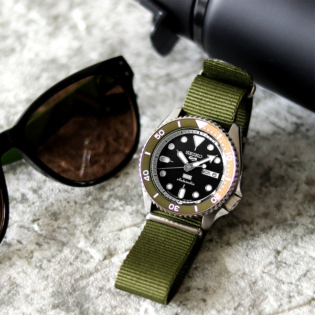 C釣りのルアー(ホットタイガー)をモチーフにし、型打ちとグラデーション塗装で文字盤を仕上げたChaos Fishing Clubらしいモデル。 シリコンバンドの表面にはロゴ、裏面にはコンセプト「てきとうにやっちゃうよ?」を印刷。 ガラス裏面にはChaos Fishing Clubのロゴデザインを印刷しています。 50年以上の歴史をもつスポーツタイプの機械式時計「セイコー 5スポーツ」をリローンチ。 多様な感性や価値観が飛び交う現代を象徴する“5つのスタイル”をデザインコンセプトに、5つのコレクションで展開。 商品番号:SBSA171 ななぷれ価格 42,900円(税込) ▼コチラからご購入いただけます▼ E