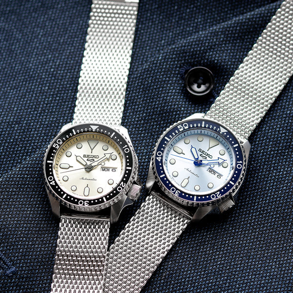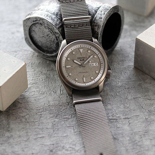 文字盤はエッチングによりセメントの気泡痕を表現。 ステンレスとセメント調ダイアルの素材感の組み合わせで都市、ストリートの無機質さと同時にそこで強く生きようとするライフスタイルを表現しています。 限られたショップのみで販売される流通限定モデルです。[機械式腕時計] 50年以上の歴史をもつスポーツタイプの機械式時計「セイコー 5スポーツ」をリローンチ。多様な感性や価値観が飛び交う現代を象徴する“5つのスタイル”をデザインコンセプトに、5つのコレクションで展開。 それぞれ異なるコンセプトを持つものの、ケースやダイヤルのデザインは、たった一つのモデル「ボーイ(BOY)」をベースにしています。 商品番号:SBSA127 発売日:21年7月9日 ななぷれ価格 34,100円(税込) ▼コチラからご購入いただけます▼
