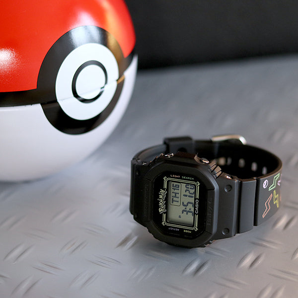 BABY-Gが25周年を迎える年に、ポケモン図鑑の図鑑番号が25のポケモンであるピカチュウとのコラボが実現。 遊環にも「25」の数字がプリントされています。 1996年に発売されたゲームボーイ専用ソフト「ポケットモンスター赤・緑」の世界観をエッジィに表現。 ブラックをベースに、バンドにはピカチュウをイメージした稲妻マークとモンスターボールを、 ネオンカラーのゲームドット風アートでプリントした、90年代感溢れるデザインです。 文字板は、当時のゲーム画面をモチーフにデザイン。 ELバックライトを点灯するとゲームドットのピカチュウが浮かび上がり、裏蓋にはピカチュウの後ろ姿が刻印されています。 パッケージもモンスターボールをモチーフにした特別仕様です。 商品番号:BGD-560PKC-1DR ななぷれ価格 15,272+税 ▼コチラからご購入いただけます▼