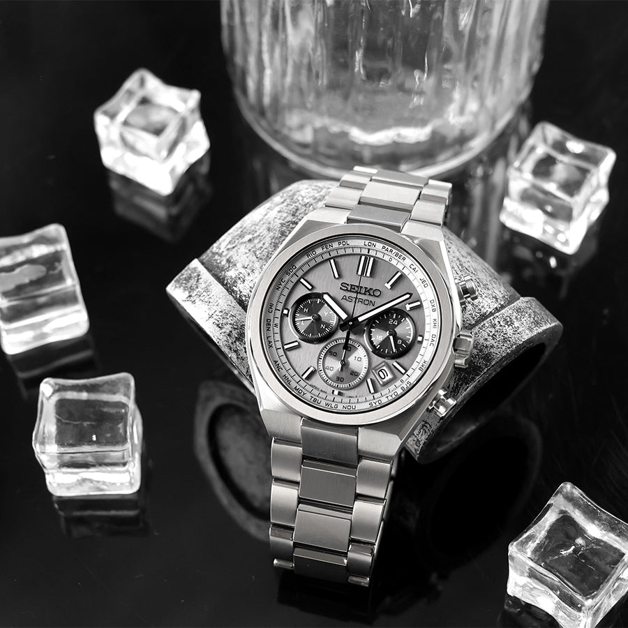 Nexterシリーズのデザインコードを踏襲した、ケース/ブレスレット一体型の先進的なフォルム、ソリッドなケース造形が特徴的なビジネススタイルにもマッチするスタイリッシュなスポーティデザインとなっております。 径小ムーヴメントであるキャリバー8B92を採用したことでケース径41.3mm、厚さ10.6mmと日本人の腕に収まりの良いサイズ感を実現。 2時/4時位置のボタンはストップウオッチの操作性を考慮した形状にアップデート。 8時/10時位置のボタンは半沈頭仕様にすることですっきりと洗練された印象に。 ソリッド感を際立たせたチタン製のベゼル上面に力強い縦筋目を施すことで精悍かつスタイリッシュな印象に。 クロノグラフモデルの王道であるサブダイヤルを色分けしたダイヤルには、ソリッドなデザインと相性の良い質感の高い縦筋目のパターンを採用しています。 商品番号:SBXY095 発売日:25年5月